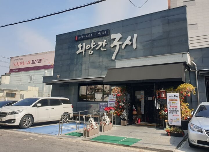 외양간 구시는 현재 건물의 뒤쪽에 있다가 사업이 번창해서 현재 장소로 확장 이전을 해서인지 외관과 내부가 깔끔했습니다. 이전 장소와는 달리 주차장도 있었습니다.
