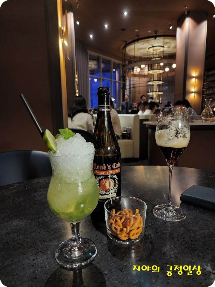와인은 잘 모르니 맥주 중에서 추천해주는 흑맥주와 무알콜 모히또를 주문했답니다~~