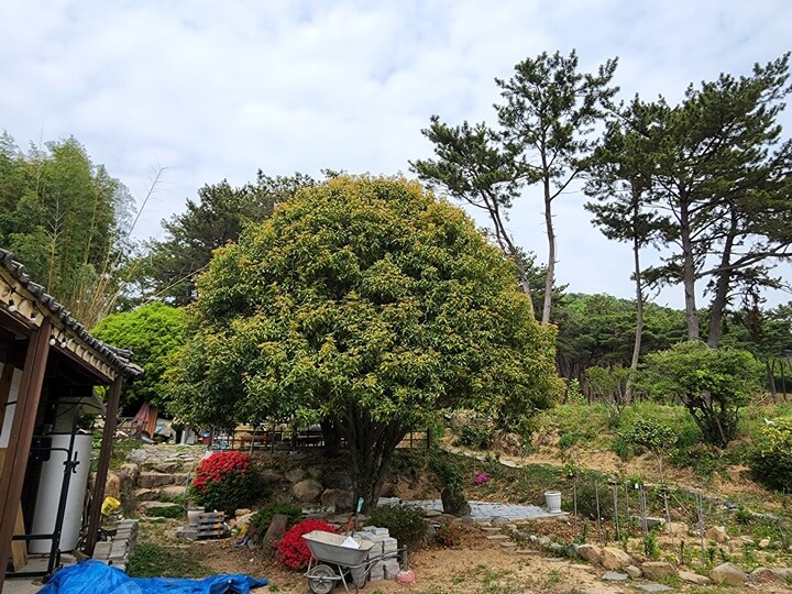 뒷마당으로 돌아가기 전 보이는 큰 나무인데, 가을이면 꽃이 노랗게 활짝 피는 진짜 이쁜 나무라고 설명해주셨습니다.